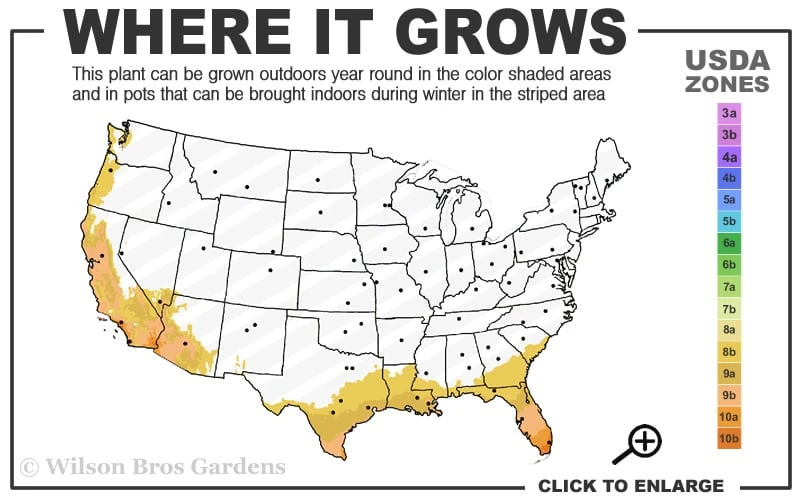 USDA Cold Hardiness Zones:Â 8b-11Â Find Your Zone