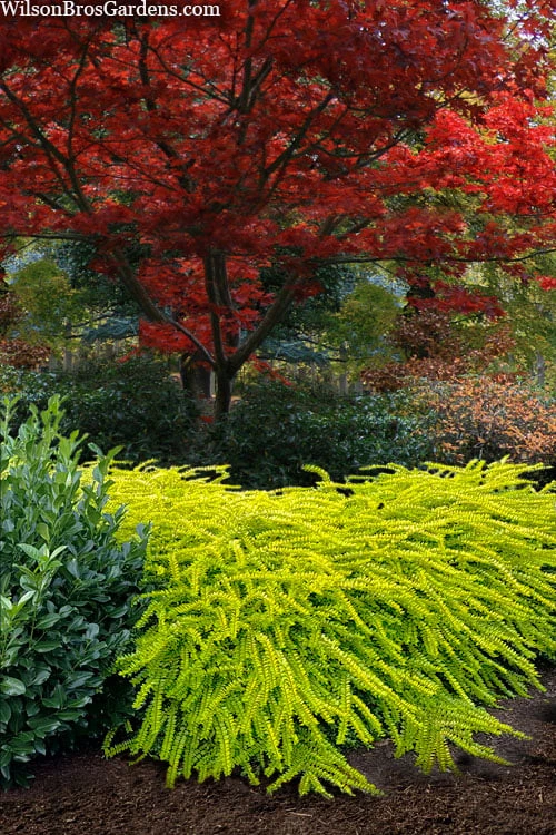 An award-winning new Golden Box Honeysuckle, ‘Thunderbolt’ features dainty, glowing golden chartreuse foliage on a dense mounded form that you can allow to cascade naturally or shape as desired. Responding very well to pruning or shearing for various formal shapes or hedges, this textural and colorful beauty is a fine alternative to boxwood or Japanese holly for partially shaded areas. We suggest 3 to 4 hours of sunlight per day, preferably in the morning and/or evening hours. If left unpruned, the cascading branches form a soft-textured mound 3 to 4 feet tall and wide which lights up the garden. Excellent for a stunning natural or formal hedge in the garden or as a solo in containers.