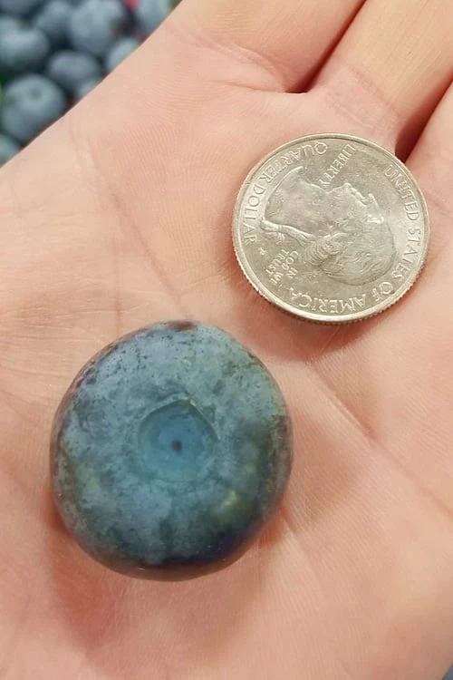 Everybody wants bigger fruit, and this amazing blueberry bush produces berries two to four times the size of the average blueberry – up to the size of a quarter! A University of Georgia 2012 release, the jumbo-size berries of Titan Rabbiteye Blueberry are very sweet with that typical blueberry flavor we blueberry lovers love. The Titan Blueberry does exceptionally well in USDA Zones 6a to 9a.