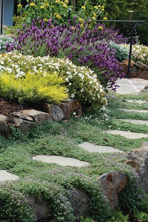 Spacing:Â 18″ apart for mass plantings; 6-12″ apart between stepping stones